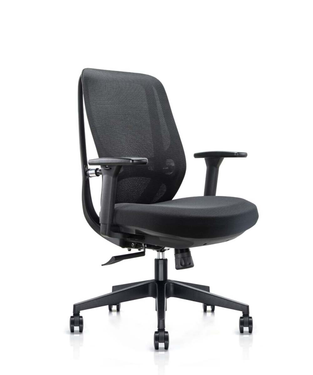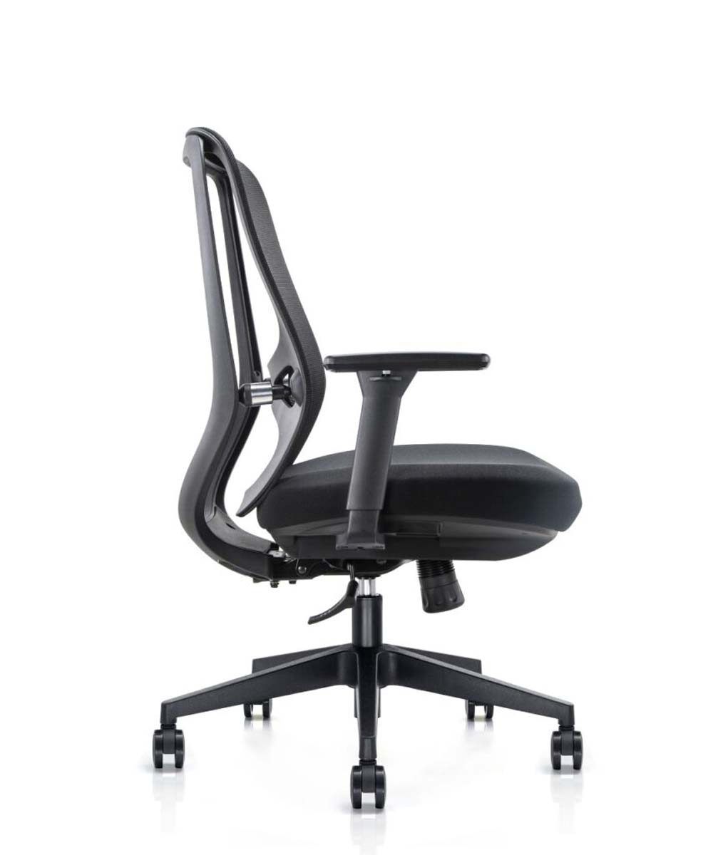 גב הרשת האוורירי מעניק תמיכה מושלמת לגב התחתון ומאפשר זרימת אוויר טבעית עם קפיצים בגב, בעוד שהמושב המרופד בעדינות מספק נוחות גבוהה לאורך שעות העבודה.